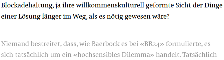 ist auch bei mir noch schwarz, erst ab "Niemand bestreitet, dass, wie Baerbock es bei «BR24» formulierte, es" wird der Text blass.