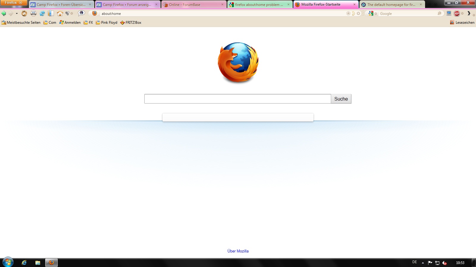 Also bei aller Mühe, ich kann das Problem nicht abstellen, so sieht die "about:home" Seite bei mir aus. Neues Profil ist alles okay, aber ich möchte eigentlich lieber bei meinem alten bleiben, Passwörter, Add ons, Einstellungenusw....