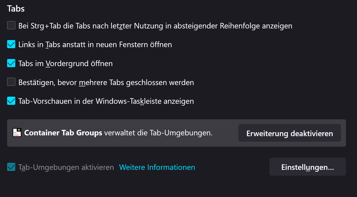 Das stimmt aber so leider nicht!? Ich sehe außer einem Tab einer Gruppe auch noch Tabs anderer Gruppen und nicht in Gruppen zusammengefasste Tabs?!