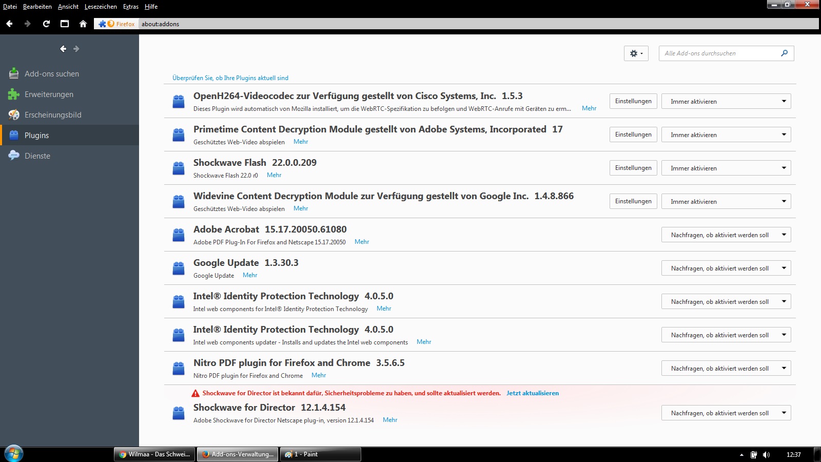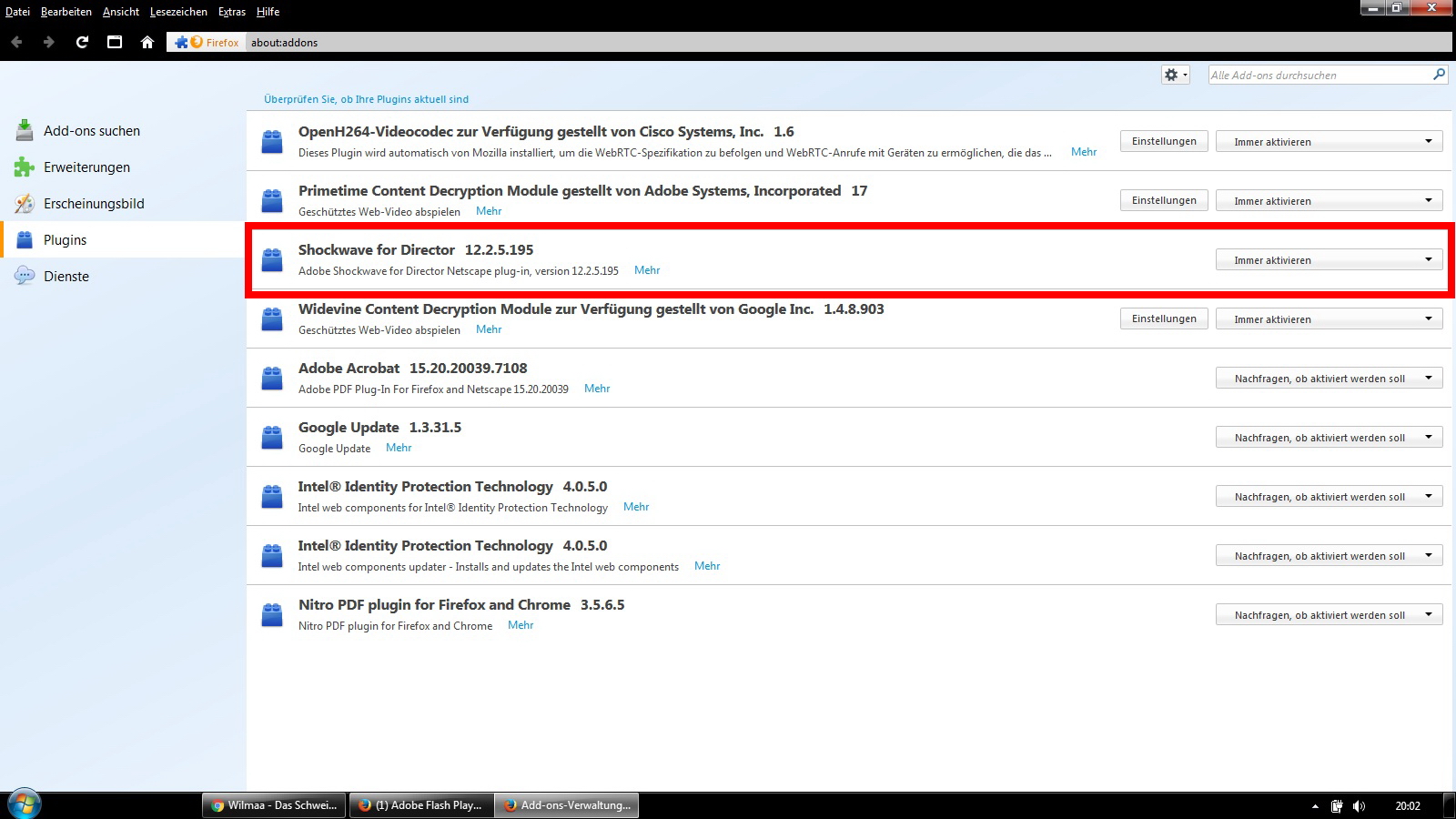 Mittlerweile habe ich es geschafft, den Shockwave for Director in die Plugins zu bringen, allerdings kommt immer noch die Fehlermeldung: