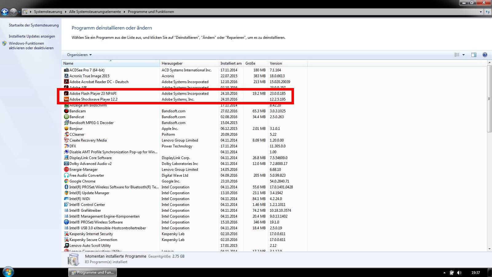 Habe ich gemacht. Flash deinstalliert und neu installiert.