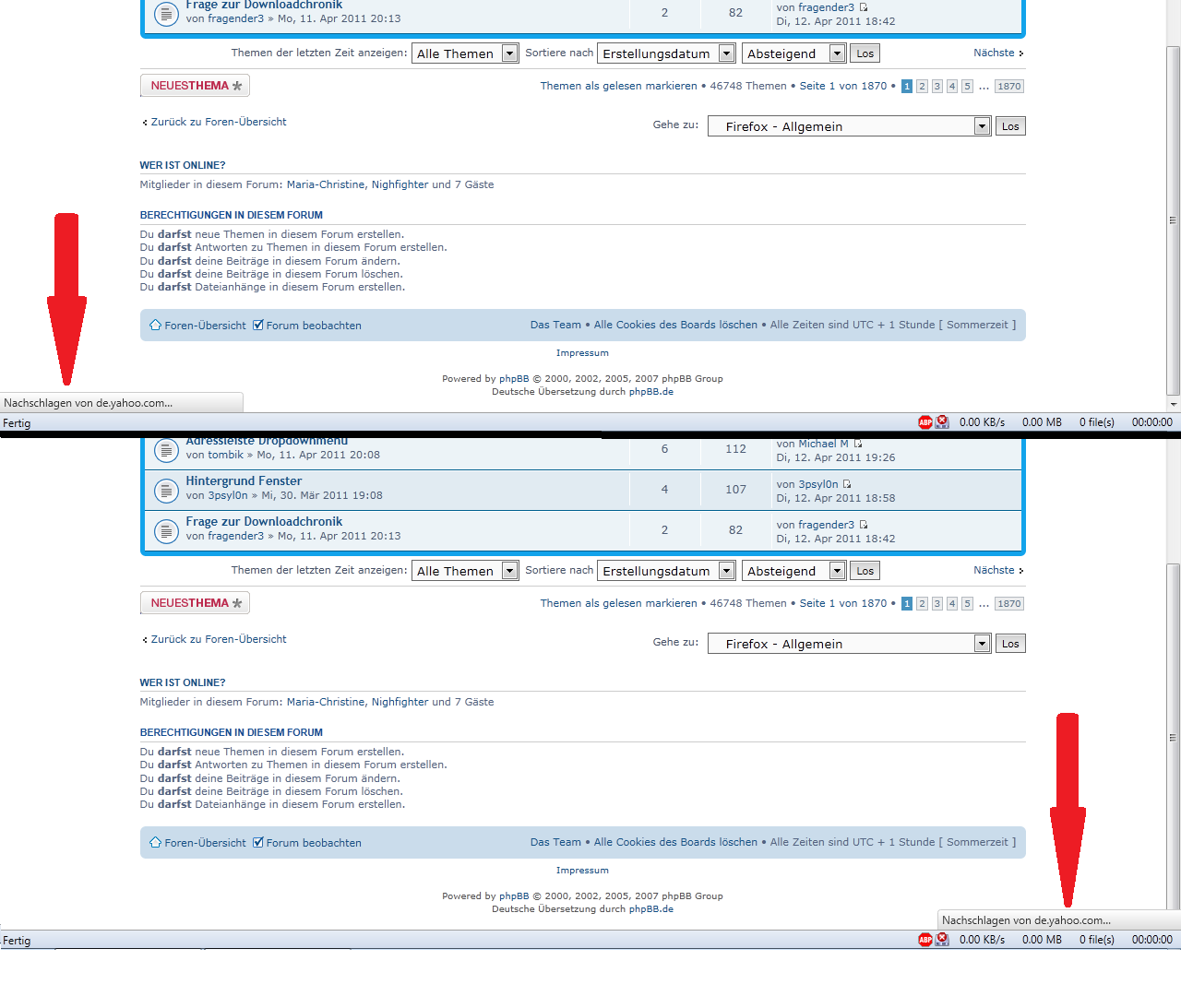 Oben in der Adressleiste habe ich jetzt wieder den Ladefortschritt, aber die Anzeige (vorschau/weiterleitung) für die Links ist immer noch nicht sichtbar.