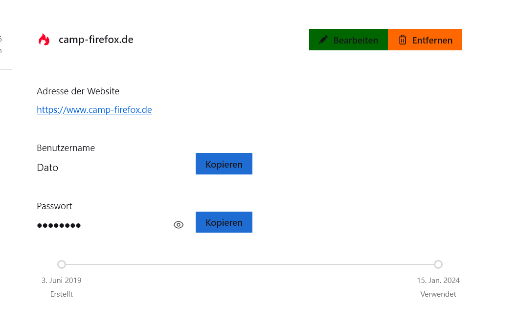 Alles anzeigen-moz-document url-prefix(about:logins) { .action-buttons .edit-button, .action-buttons edit-button { appearance: none !important; background-color: #006600 !important; color: yellow !important; } .action-buttons .edit-button:hover, .action-buttons edit-button:hover { background-color: #03a224 !important; } .action-buttons .delete-button, .action-buttons delete-button { background-color: #ff6800 !important; color: yellow !important; } .action-buttons .delete-button:hover, .action-buttons delete-button:hover { background-color: #e02020 !important; } .detail-grid .copy-button, .detail-grid copy-username-button, .detail-grid copy-password-button { background-color: #2074e0 !important; } .detail-grid .copy-button:hover, .detail-grid copy-username-button:hover, .detail-grid copy-password-button:hover { background-color: #004aaa !important; } } -