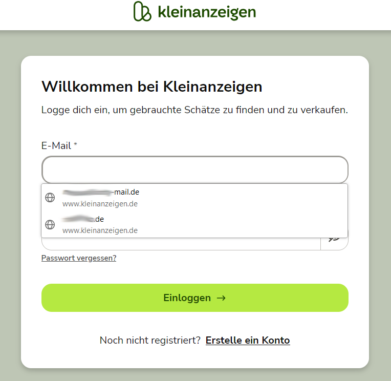 bei dne kleinanzeige kann ich mich einlogen wenn ich auf das erste Loginfeld klicke, da steht dann meine emailadresse und das Passwort wird automatisch ausgefüllt.