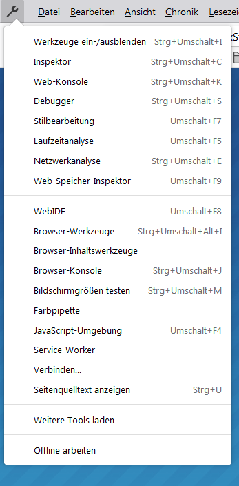 ja das sind die Entwickler-Werkzeuge:, ich miente auch das weise wenn man drauf klick, das weis ich nicht wie sowas heist.auf Schlüssel klicken dann ach was ich nenne es einfach Untermenü.