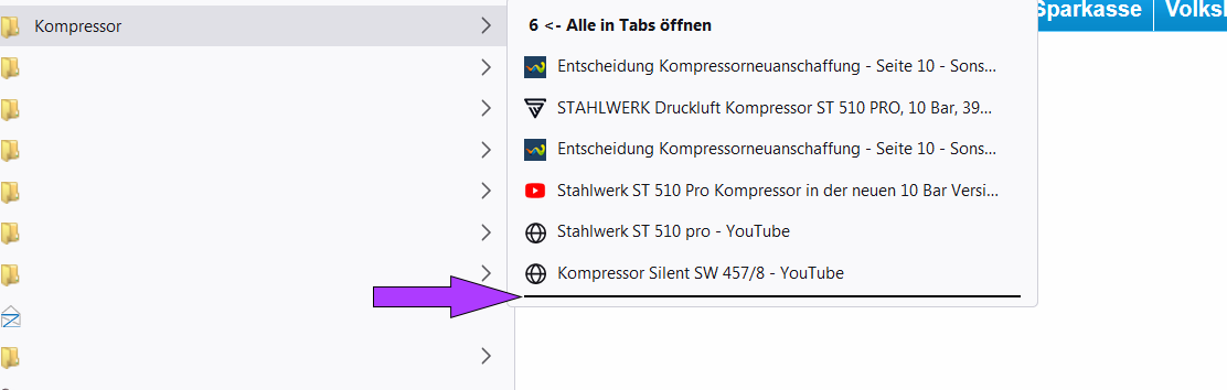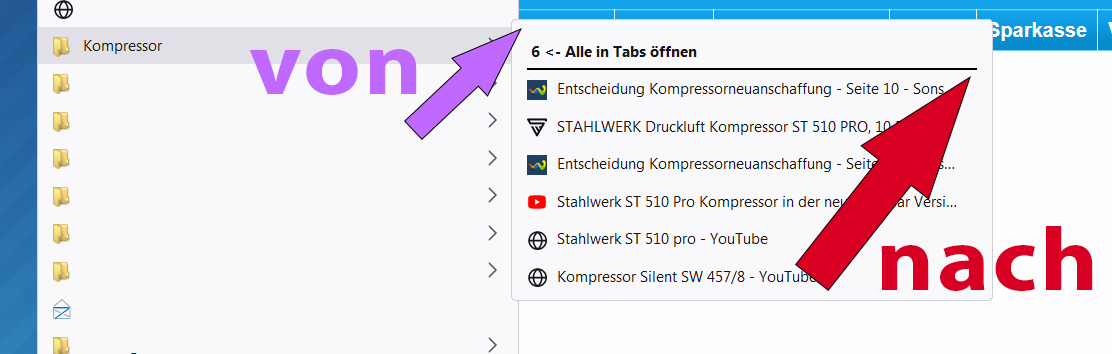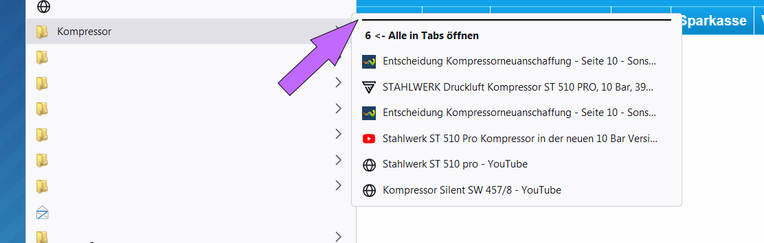 ich habe mir peer CSS den Punkt " Alle in Tabs öffnen" nach oben geschoben