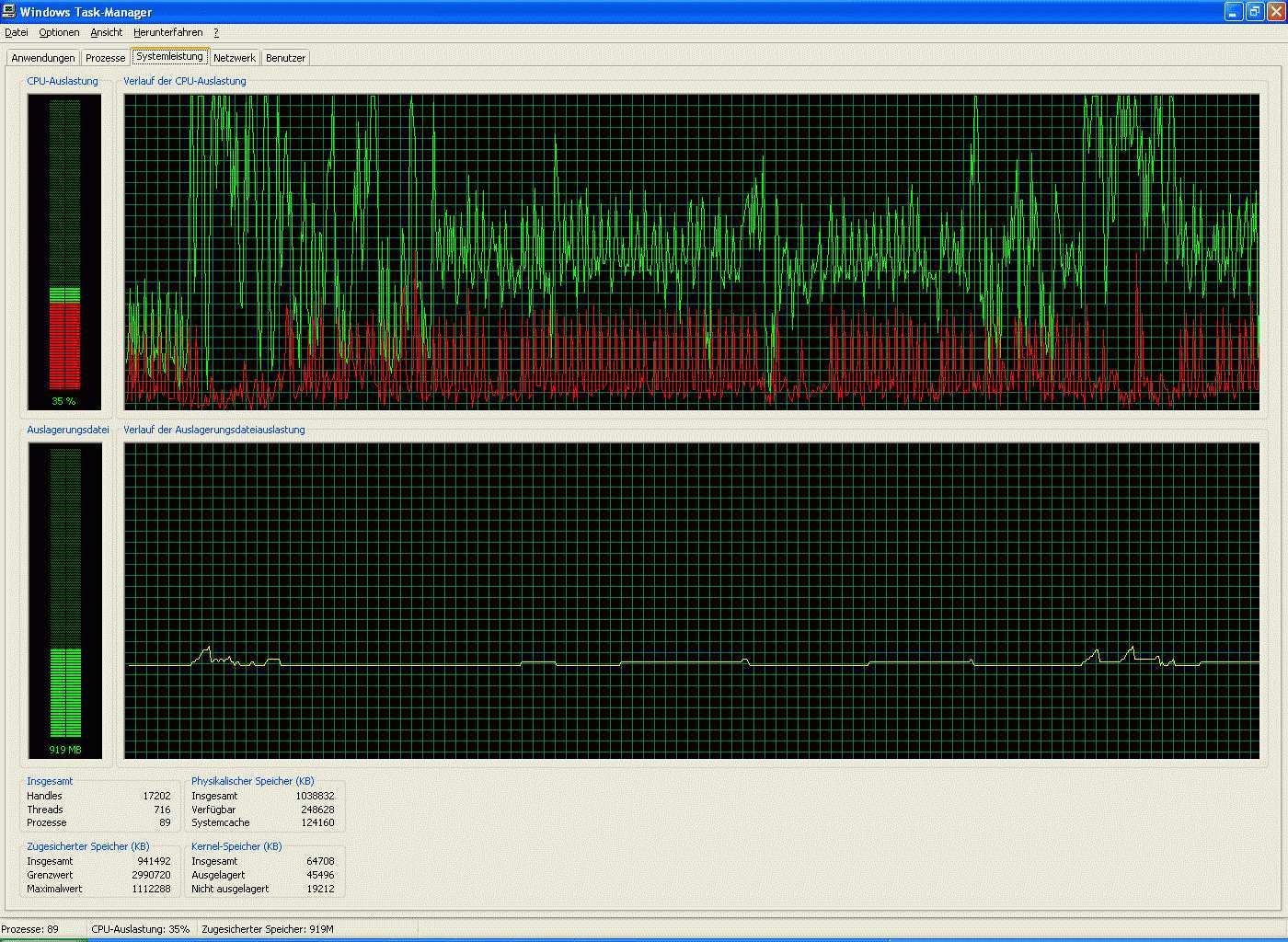 Nun habe ich den ScreenShot vom TaskManager gemacht, die Aktualisierungsrate ist standard (2 sec.).