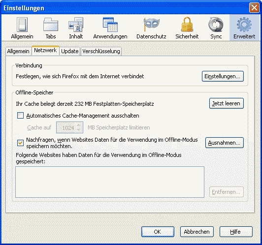 Zitat von BoersenfegerDas automatische Cache-Management im Firefox ist mit diesen Einstellungen nicht abgestellt.