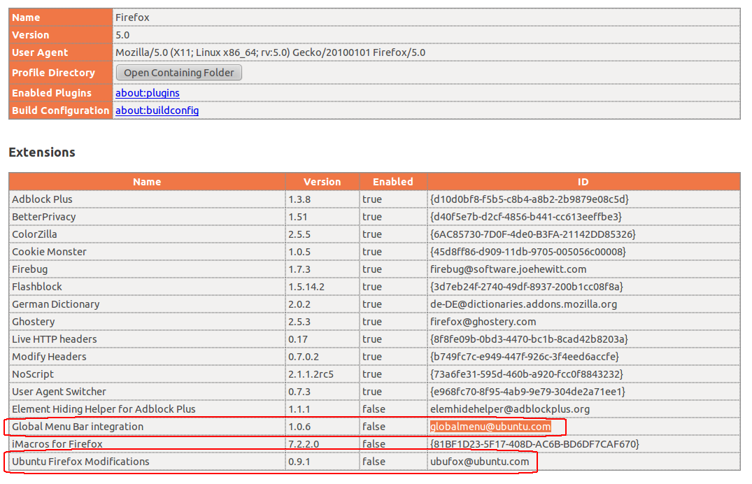 ich nutze Ubuntu und FireFox (4 und jetzt 5). In beiden Versionen kann ich 2 Extensions im Extension-Menü nicht entfernen. Dort fehlt der Remove-Button.