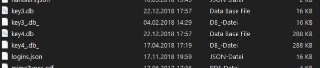 Fx beendet, key3.db und key4.db umbenannt, dann Firefox wieder gestartet. Beide Dateien wurden neu angelegt mit denselben Dateigrößen. Ob da also noch Passwörter drin stecken, weiß ich also noch immer nicht.