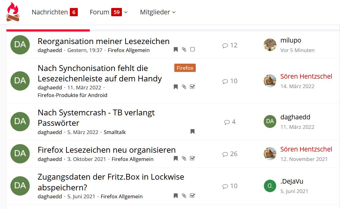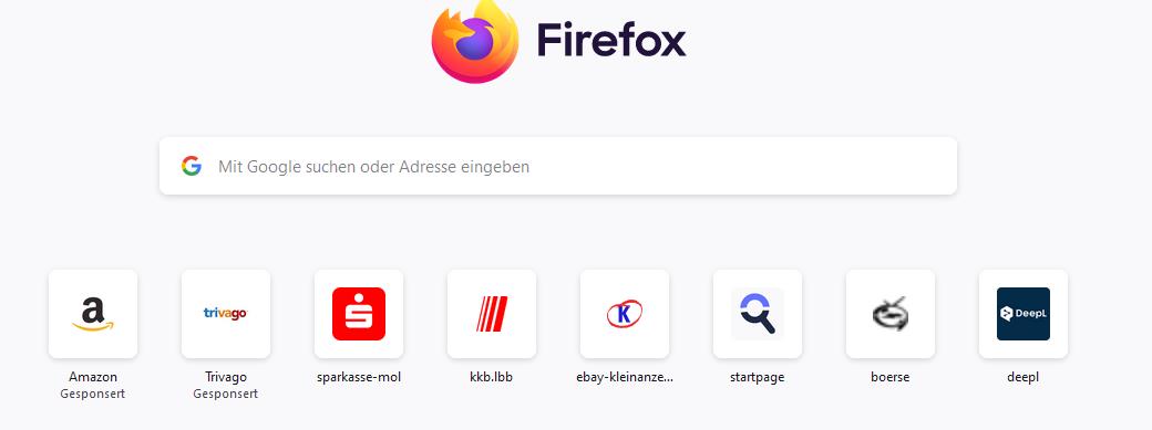 Startet man den FF so sieht man die Lesezeichen-Leiste wie folgt: