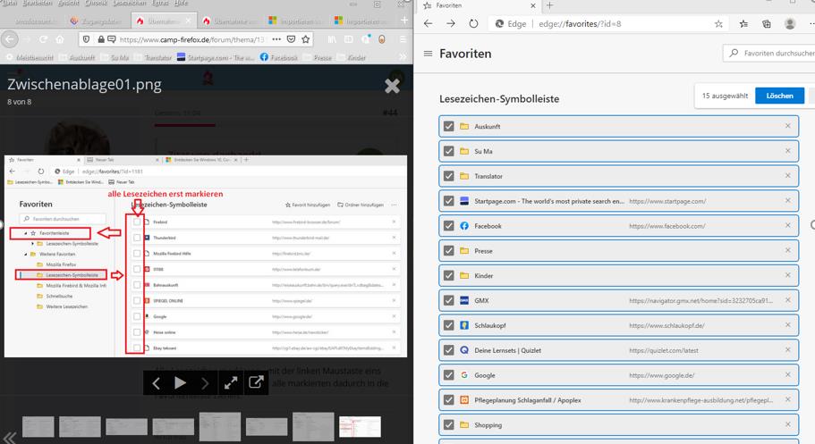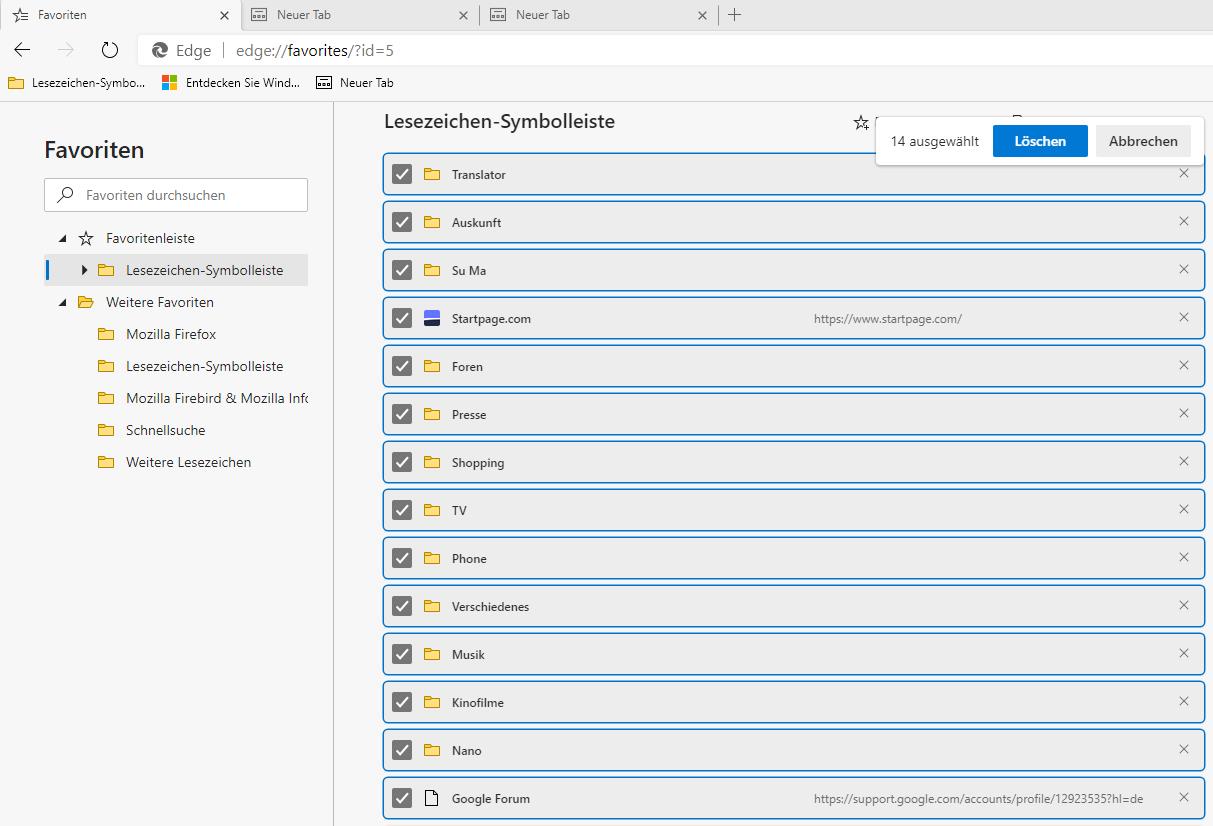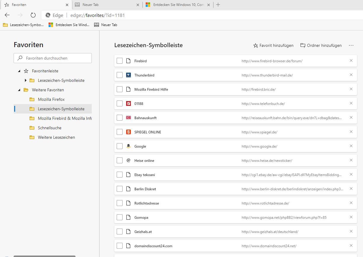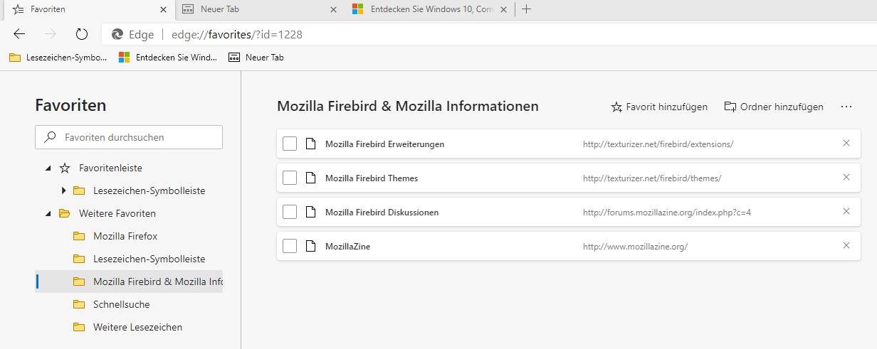Es ist auch eine Favoritenliste eingeschaltet. Aber das sind völlig andere Lesezeichen. Die von FF importierte Lesezeichenleiste ist das nicht.