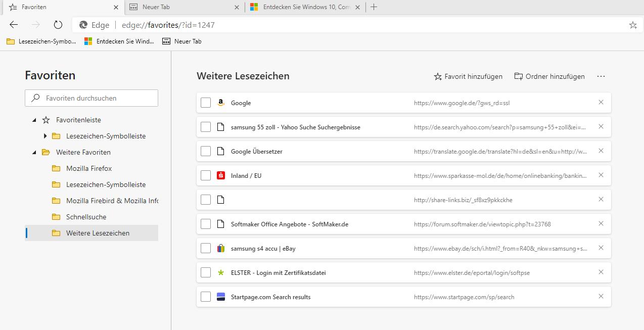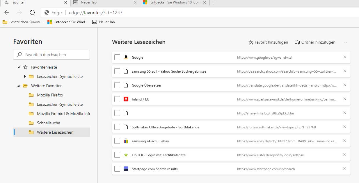 Reden wir aneinander vorbei? Der Import wird mir bestätigt. Aber die aus FF importierte Lesezeichenzeile wird nicht angezeigt.