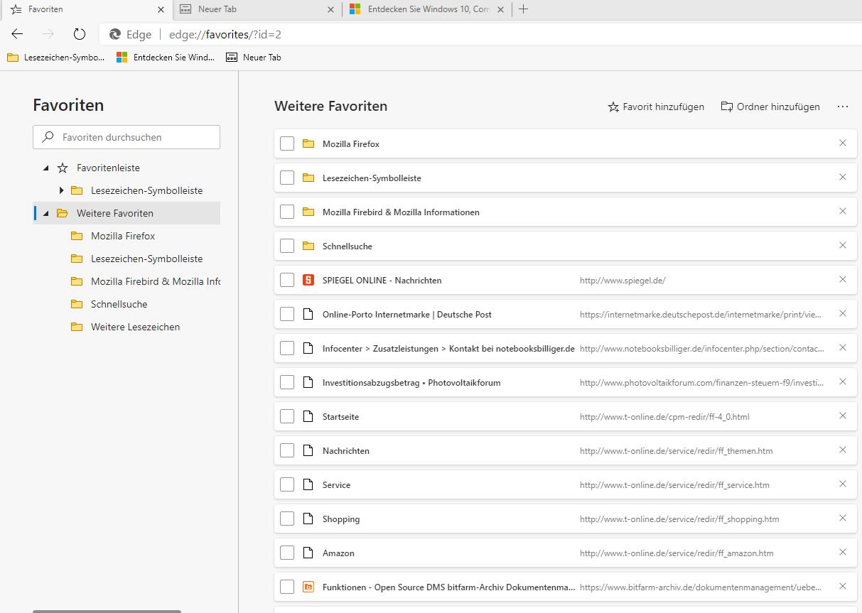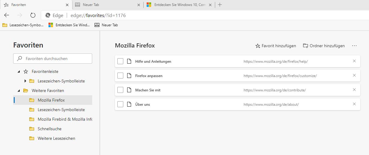 Du muss gewünschte Lesezeichen/Favoriten erst selber in die Favoritenliste von Egde ablegen. Edge kann nicht erkennen, welche Lesezeichen du vorher im Firefox in der Lesezeichen-Symbolleiste hattest.