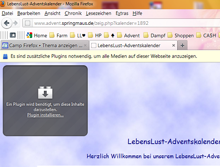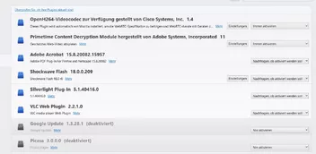 nachdem ich meinen Adobe Flashplayer erfolgreich aktualisiert habe, ist mir aufgefallen, dass ich eine ganze Reihe Plugins oder Addons (oder beides :oops: ) im FF habe, die ich im Waterfox nicht habe und der, möglicherweise deshalb, schneller ist.