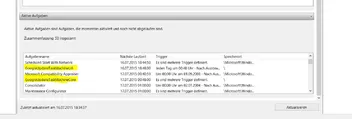 Der in deinem Link beschriebene Weg über die Verwaltung und dann Aufgabenplanung führt mich auch nicht weiter. Zwar habe ich dort zwei Einträge gefunden, siehe unten, aber bei einem Rechtsklick rührt sich nichts und auf der rechten Seite unter den Optionen wird Löschen nicht angeboten.