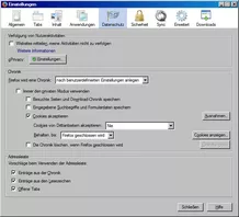 Der Reiter "Datenschutz" auf dem Fenster "Einstellungen" hat folgende Einstellungen: