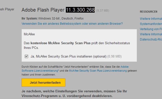 Ich habe die von dir gepostete Version ja installiert, was mich aber stutzig macht ist, wenn ich auf die adobe.com Seite gehe