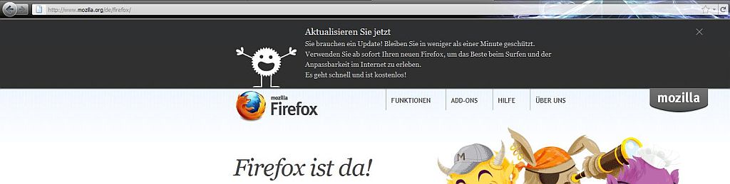 warum melden mir einige Webseiten mein Firefox sei nicht aktuell, wo es sich doch um die Version 6.0.2 handelt, die mir die Webseiten dann prompt auch zum downloaden anbieten?