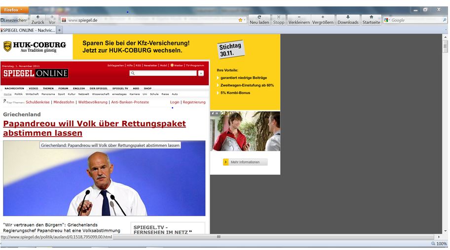 ich habe das selbe Problem mit dem "halben Bildschirm" - aber nur bei Firefox (7.0.1), nicht beim Microsoft Internet Explorer (IE9).Zum Beispiel bei Spiegel Online. Siehe 2 Screenshots.