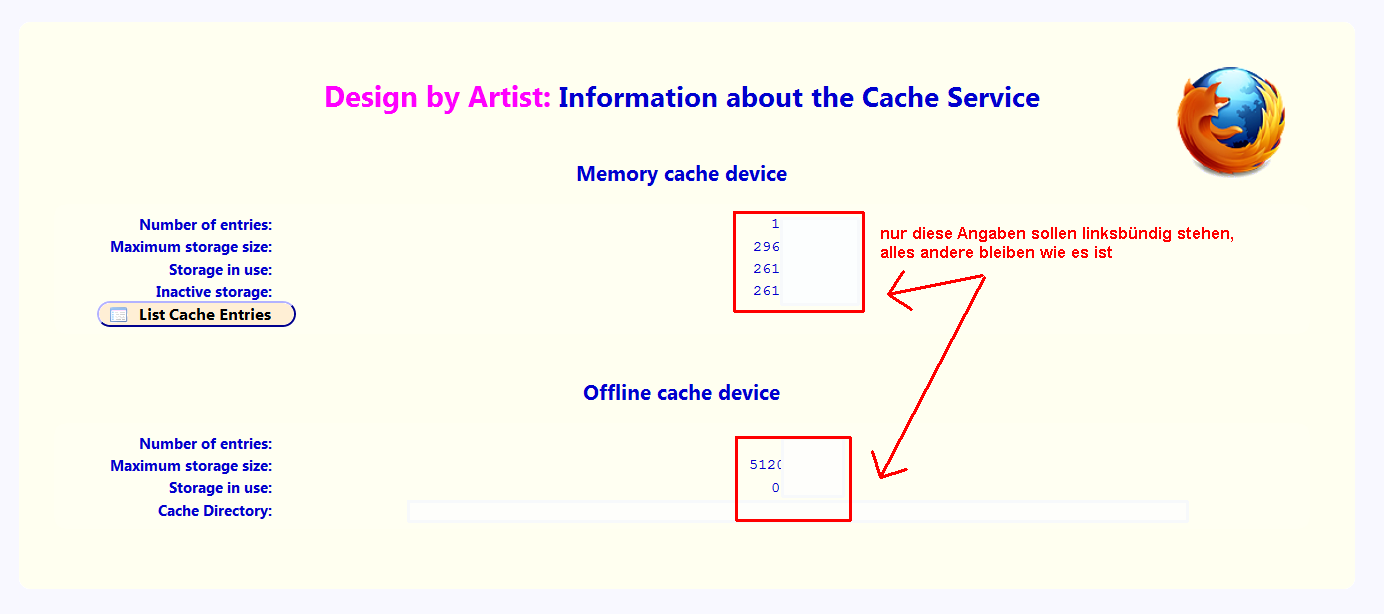 Wieder mal eine Bitte um Nachhilfe :). Hab about:cache zurechtgefummelt und es ist fast alles so wie ich möchte mit einer Ausnahme: die Texte innerhalb der zwei grauen Rahmen sollten linksbündig sein, werden aber durch das übergeordnete "centered" ebenfalls zentriert.