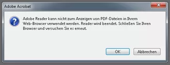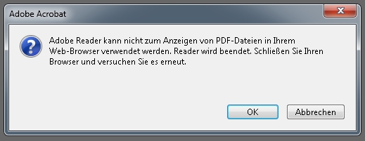 Ich benutze den Firefox 9 (V. 9.0.8112.16421) und meine pdf-Dateien öffne ich entweder mit dem Adobe Reader X 10.1.1 oder mit Adobe Acrobat Professional 8.1.0. Wenn ich aber eine pdf-Datei im Browser öffnen will, kommt immer eine Fehlermeldung (siehe Anhang). Wer kann helfen?Vielen Dank