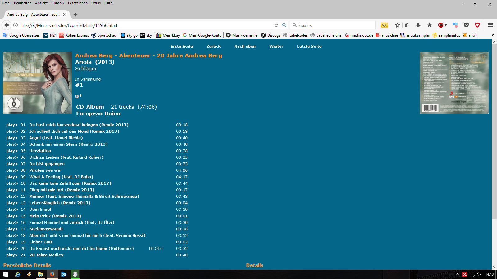 2. In Music Collector kann ich meine Datenbank in eine html-Datei exportieren (siehe Anhang).