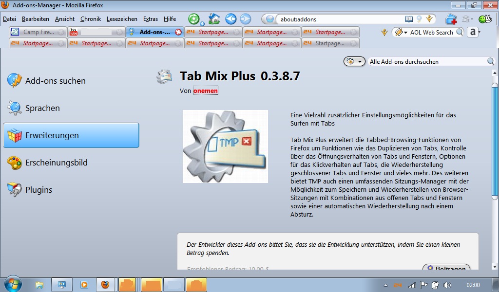 ich habe Tab Mix Plu 0.3.8.7 installiert