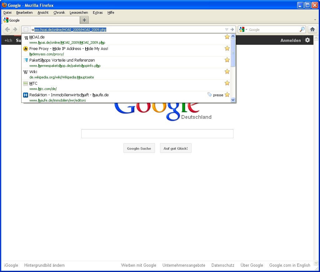 Wenn ich versuche, in die Adressleiste sowas wie "hoai" einzugeben (Lesezeichen "http://www.hoai.de"), wird der erste Buchstabe durch ein "w" ersetzt, sodass "woai" eingegeben wird. Das "w" kommt aus einem in dem Lesezeichen gespeicherten Link - bzw. aus dessen "www". Der Link an sich ist egal - schon geändert und ausprobiert.