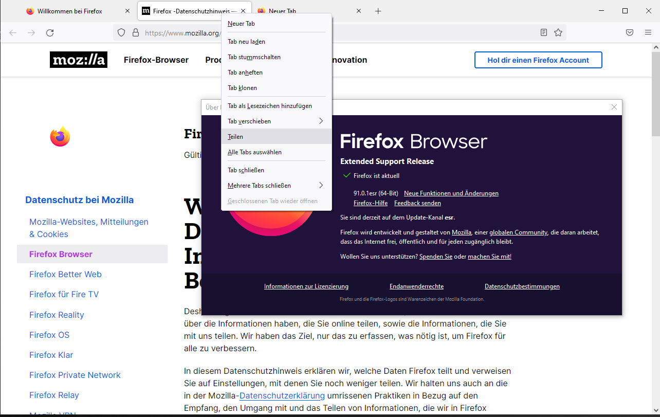 PS: ich hab oben mal wieder nicht die korrekte Firefox Version angegeben. Ich nutze natürlich Version 91.0.1