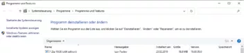 Windows Button drücken --> appwiz.cpl eingeben öffnet dann Systemsteuerung\Programme\Programme und Features