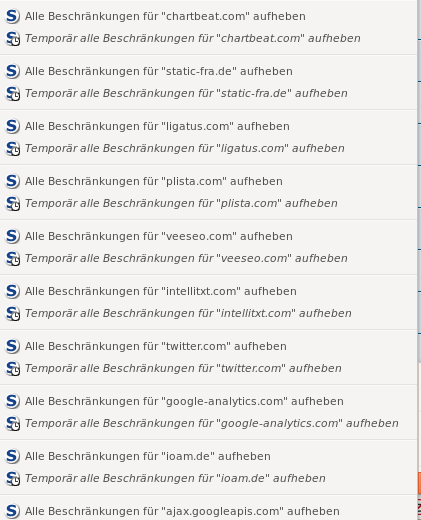 Ich übersah die Eigenschaft des NoScript alle blockierten Seiten in jedem Tab anzuzeigen.