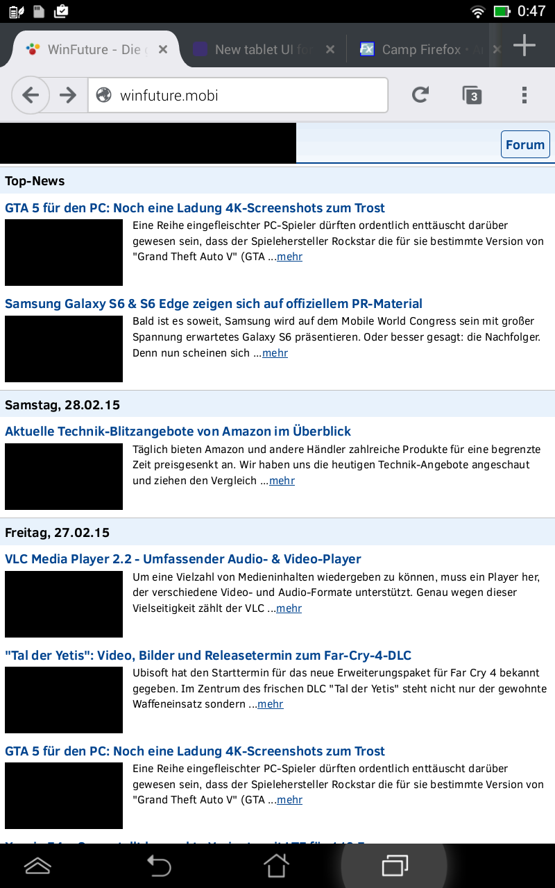 Heute hab ich Firefox auf meinem Android Tablet auf Version 36 geupdatet.