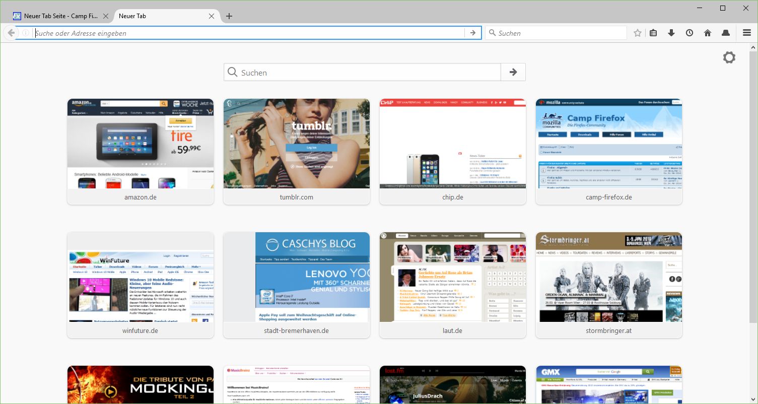 Bisher gefiehl mir die about:newtab Seite von Firefox sehr gut.