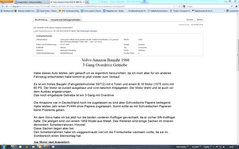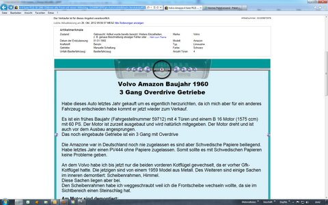 Ich bin halt ganz klassisch auf Ebay gegangen, habe dort nach dem Begriff Volvo Amazon bj 1960 eingegeben und auf das