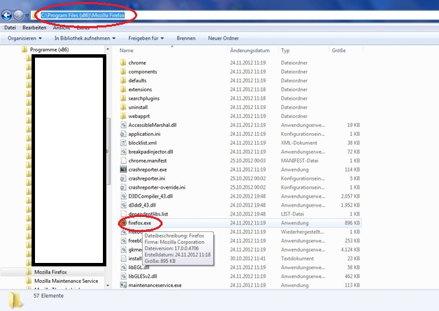 Ich kann die .exe nicht finden. Auch die Suchergebnisse firefox.exe -p oder Profilmanager gaben keine Ergebnisse.