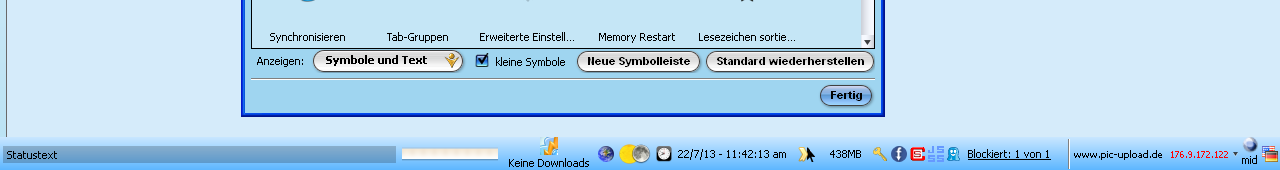 alles andere was dann rechts von den beiden Erweiterungen kommt, kann ich nicht mehr modifizieren - also nicht entfernen, nicht am Platz verändern. Ich kann auch nur Icons/Addons einfügen bis zur Anzeige vom Datum. Weiter rechts kann ich kein Icon platzieren.