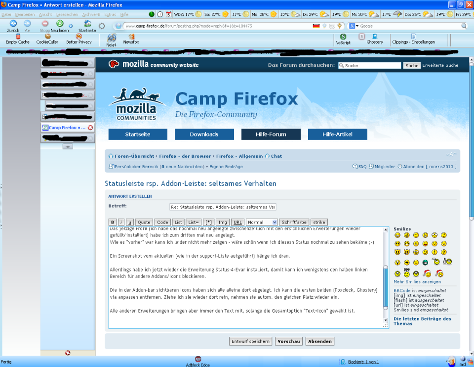 Ich poste mal ein Bild mit aktuellem Stand (habe noch ein paar Addons installiert).
