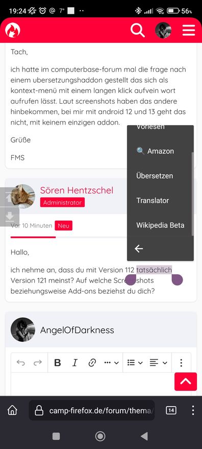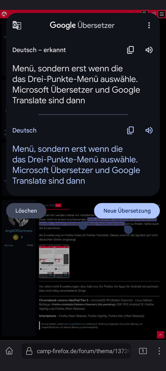 jup die läuft auch bei mir Firefox Translate es gibt bei meinem Nokia ..... ne anders wähl ein test aus drei punkte übersetzen