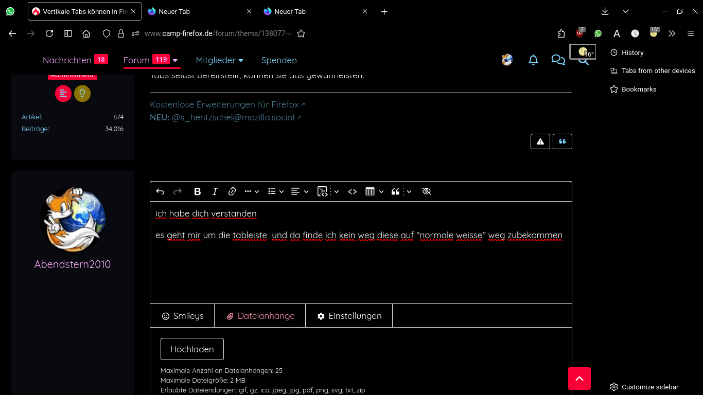 Heisst das, wenn es vertikale Tabs gibt, dann nimmt Firfox die horizontale Tabs weg? Ich hoffe habe es falsch verstanden.