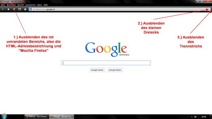 Vielen Dank! Mit dieser Einstellung habe ich nun das gewünschte schwarze Layout, aber HTML-Adressbezeichnung und "Mozilla Firefox" sind noch da .....