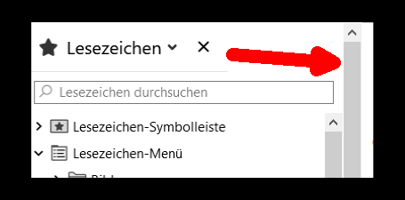 jetzt muss ich leider meinen Beitrag nochmals öffnen, da mir heute aufgefallen ist, dass in der geöffneten Lesezeichen Sidebar nicht mehr die Funktion "Lesezeichen durchsuchen" vorhanden ist. Ich wäre dankbar für einen Tipp, wie diese Funktion wieder hergestellt werden könnte.