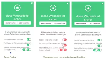 Ich weiss ja, dass FF Phishing und Malware-Protection eingebaut hat, aber ist es nicht möglich, dass avast weitere Seiten kennt und umgekehrt und warum entwickelt avast das Teil wenn's unnötig ist? Hier ein Screenshot über eine weitere Funktion, das Blocken von Analyse-Seiten. Wenn alle Seiten wären wie camp-firefox wär's okay aber die weiteren Beispiele von wordpress.com zählen noch zu einem eher geringfügigen Aufkommen von Schnüfflern.[attachment=0]Screenshot_Avast.jpg[/attachment]