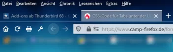 Alles anzeigenvar tab_hover={ event:null, tid:null, onLoad: function() { gBrowser.tabContainer.addEventListener("mouseout", tab_hover.onMouseOut, false); gBrowser.tabContainer.addEventListener("mouseover", tab_hover.onMouseOver, false); }, onUnload: function() { gBrowser.tabContainer.removeEventListener("mouseover", tab_hover.onMouseOver, false); gBrowser.tabContainer.removeEventListener("mouseout", tab_hover.onMouseOut, false); }, onMouseOver: function(event) { tab_hover.event=event.target; tab_hover.tid=setTimeout( function(){ gBrowser.selectedTab=tab_hover.event; } , 250); }, onMouseOut: function() { clearTimeout(tab_hover.tid); } }; tab_hover.onLoad(); -