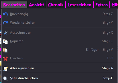 Bei Alles Auswählen und Seite durchsuchen passt es mit der Schrift.