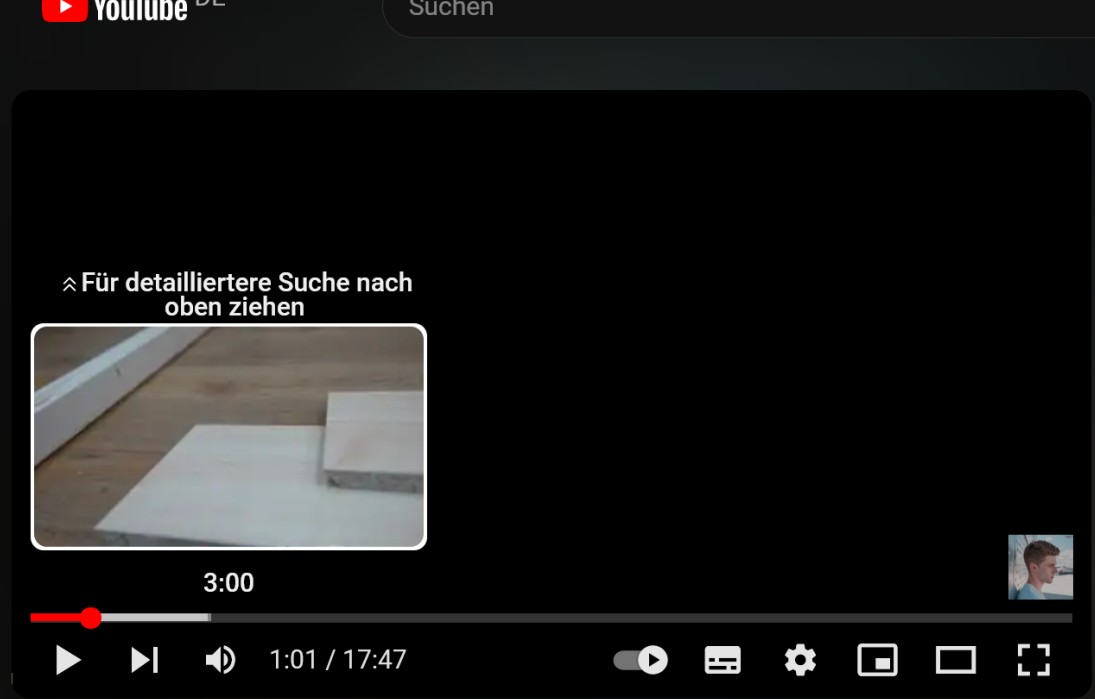 Klicke ich auf auf das Video, öffnet sich unten links ein kleines Fenster und das Video wird für den Moment angezeigt, bleibt dann aber stehen.