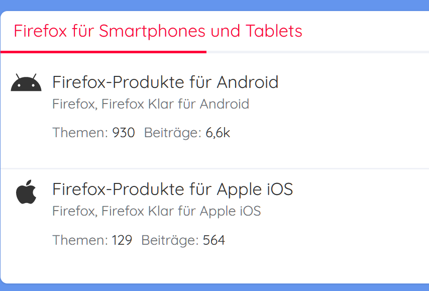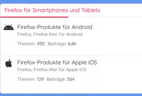 Wird nur Android angezeigt. Müsste doch eigentlich auch mindestens Firefox-Produkte für IOS mit angezeigt werden.