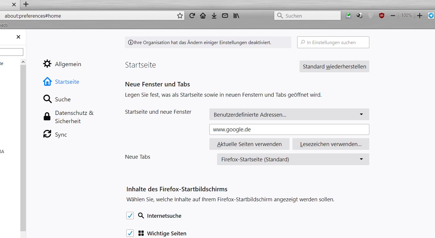 Mit Mozilla Backup Einstellungen und Addons wiederhergestellt..