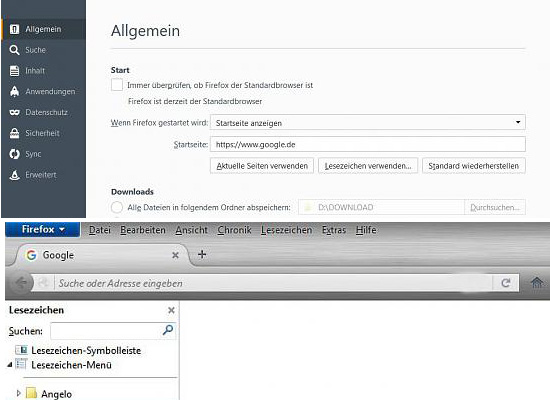 Seit dem erscheint in der Adressleiste nichtmehr die in den Einstellung voreingestellte Startseite (http://www.google.de)