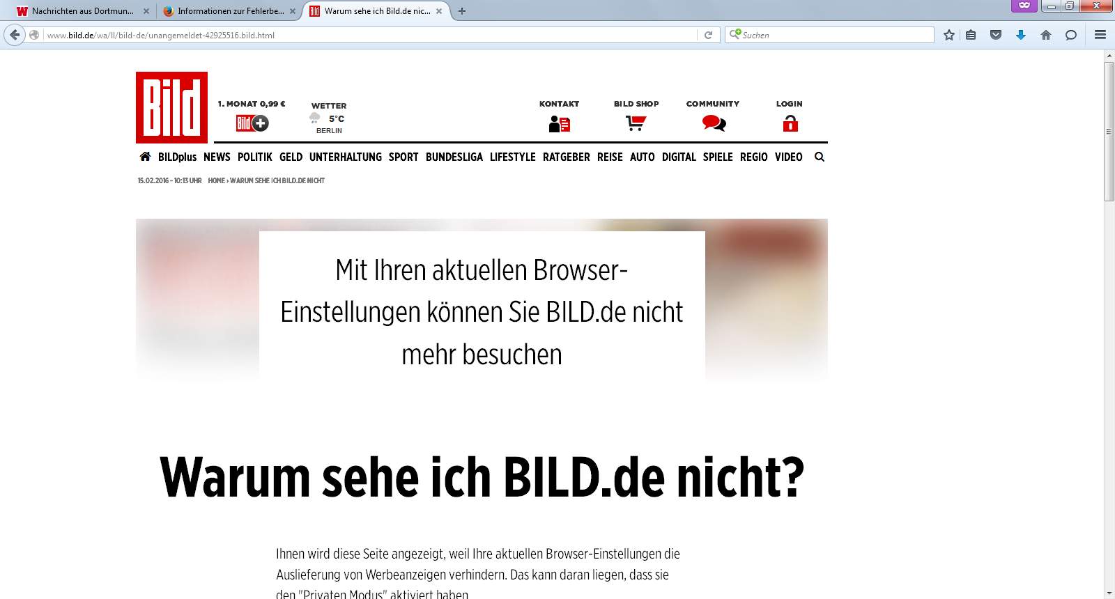 Aber egal. Mhh, daß Bild.de und derwesten aber Leute mt Browsern <44 ausschließen ... wundert mich.